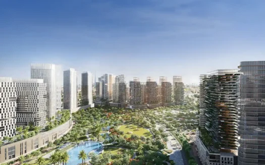 The development boasts towering edifices offering panoramic vistas of the city skyline, coupled with ample verdure and expansive areas for residents to relish.